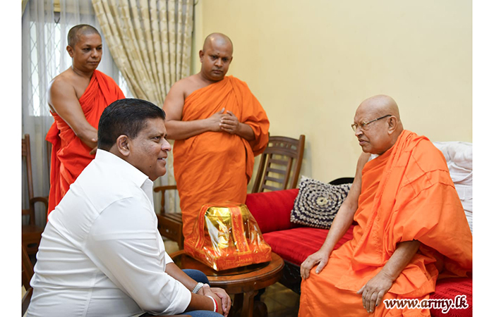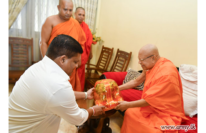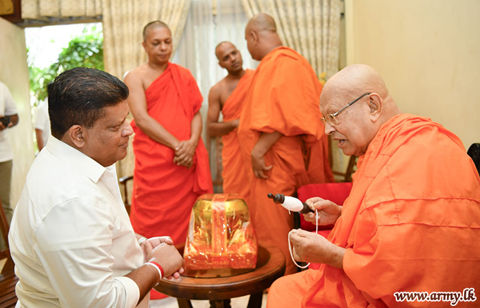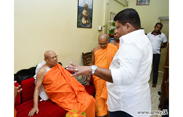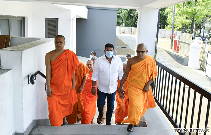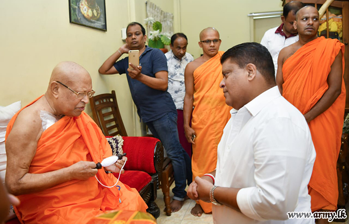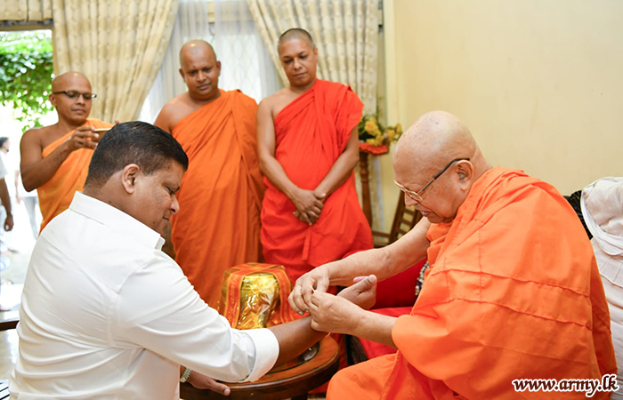 Most respected Ven Kusaladhamma Nayake Thera also invoked blessings on the visiting Army Chief by tying a blessed thread around Lieutenant General Shavendra Silva’s wrist after the Commander gave a patient hearing to the monk and inquired into his well-being. Afterwards, a few other senior monks accompanied Lieutenant General Shavendra Silva to the partly completed new construction site and showed him around emphasizing on the need for final touches and completion of remaining work.
