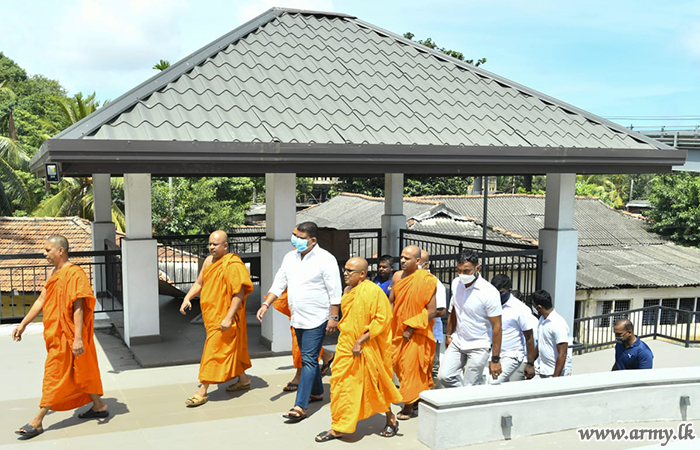 Ven monk after extending a warm welcome to Lieutenant General Shavendra Silva explained him the status quo as regards its construction phase, being built to accommodate more and more learning monks. The Vidyalankara Pirivena, one of the most reputed seats of learning in the country for monks for generations is in the process of expanding its building complex giving a facelift and the Army Corps of Engineer Service (CES) is engaged in the erection of its delayed auditorium.