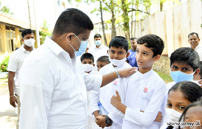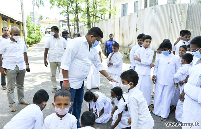 On his way back inside the premises, Daham school students eagerly greeted the visiting Army Chief and Lieutenant General Shavendra Silva paused to exchange a few thoughts with them.