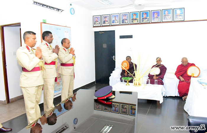 The newly-appointed General Officer Commanding of the 11 Division was warmly welcomed by Staff Officers and honoured in a Guard Turnout, presented by the troops of the 10 Battalion Gajaba Regiment. Later on, Brigadier Sarada Samarakoon placed his signature in an official document to mark his assumption of duties, amidst chanting of ‘Seth Pirith’ in the presence of Senior Officers.