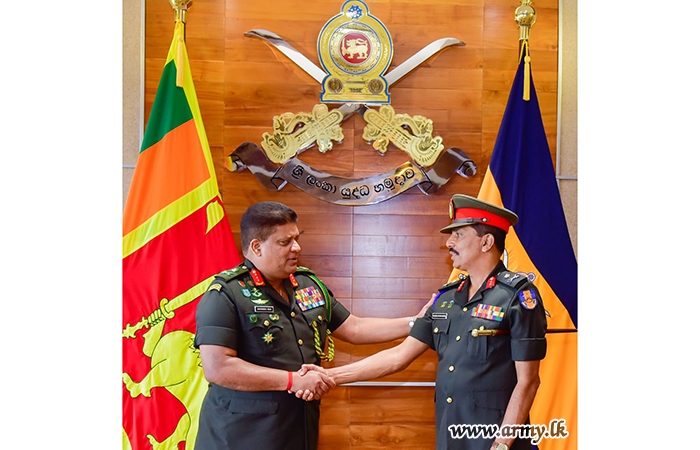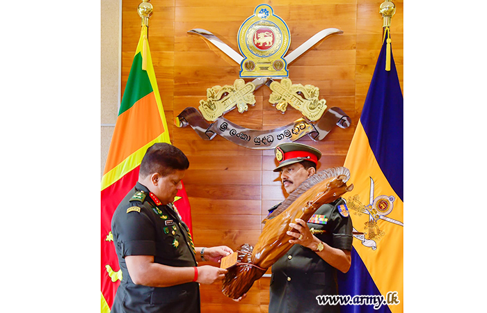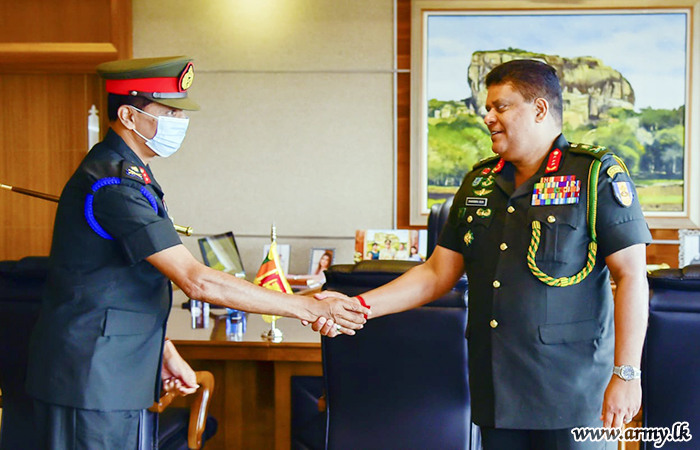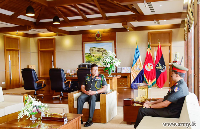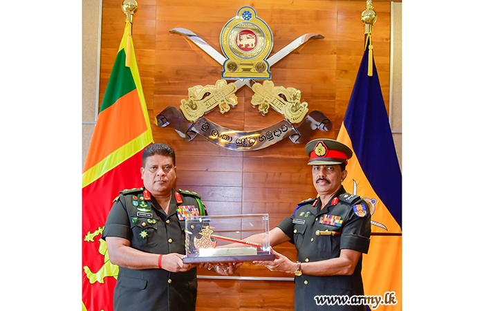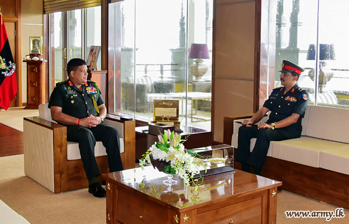 The Sri Lanka Signal Corps (SLSC) groomed one of the proud and hardworking soldiers, Major General Prasanna Chandrasekara of the Sri Lanka Signal Corps (SLSC), Master General Ordnance (MGO) at the Army Headquarters on the eve of his retirement from the Army had the distinction of meeting with the Chief of Defence Staff and Commander of the Army, Lieutenant General Shavendra Silva at latter's office at the AHQ on Wednesday (02).