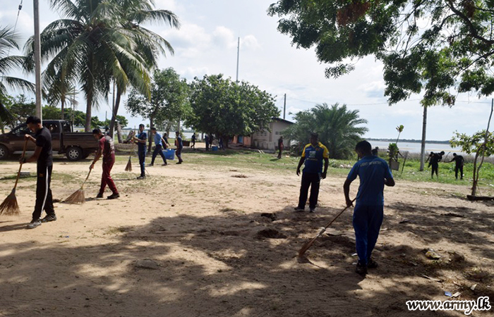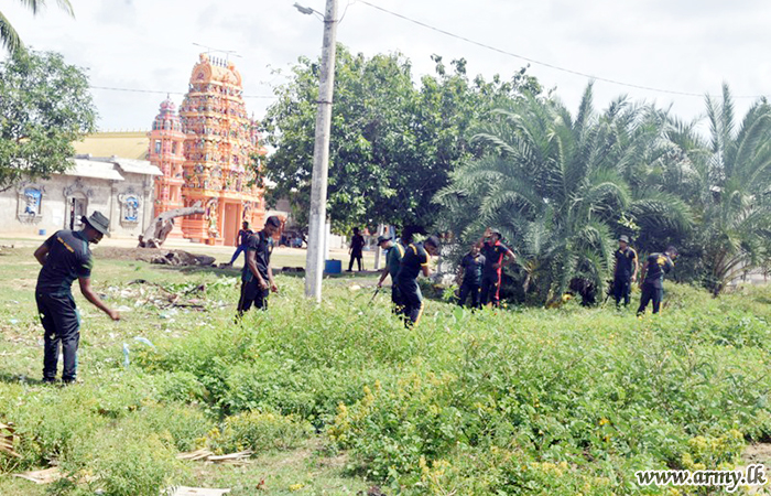 Meanwhile, troops of the 12 Sri Lanka Light Infantry, 23 Sri Lanka Light Infantry and 24 Sri Lanka Sinha Regiment cleaned the Kannaki Amman Hindu temple in Wattappalei on 5 September 2020. |