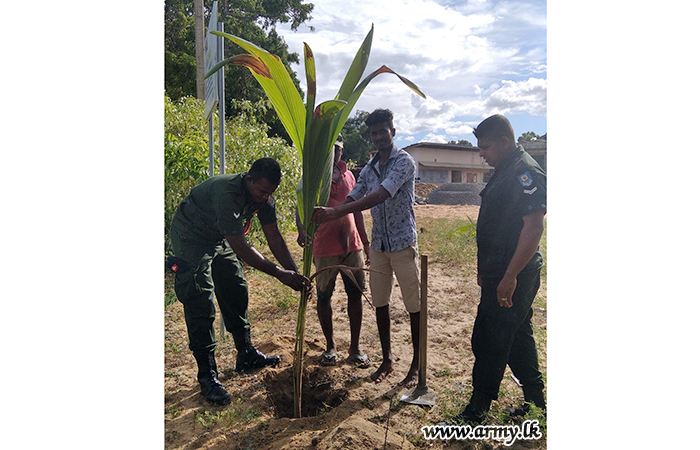 Troops of the 12 Sri Lanka Light Infantry under Command to the 59 Division of the Security Forces Mullaittivu planted coconut saplings at Wadduwakal Kannagi Amman Temple premises on 2 September on a suggestion, made by Major General Jagath Rathnayake, Commander, Security Forces Mullaittivu and on the directions of Major General Priyantha Perera, General Officer Commanding 59 Division.