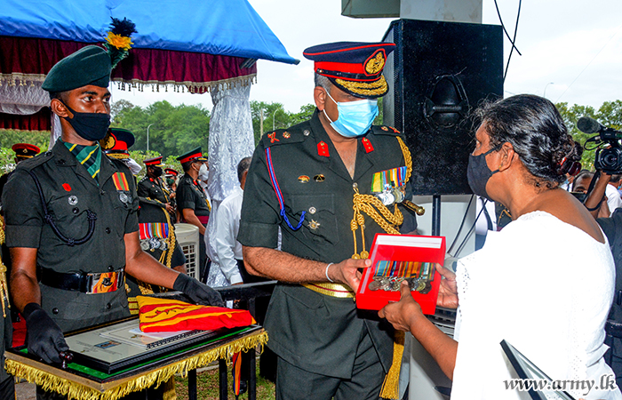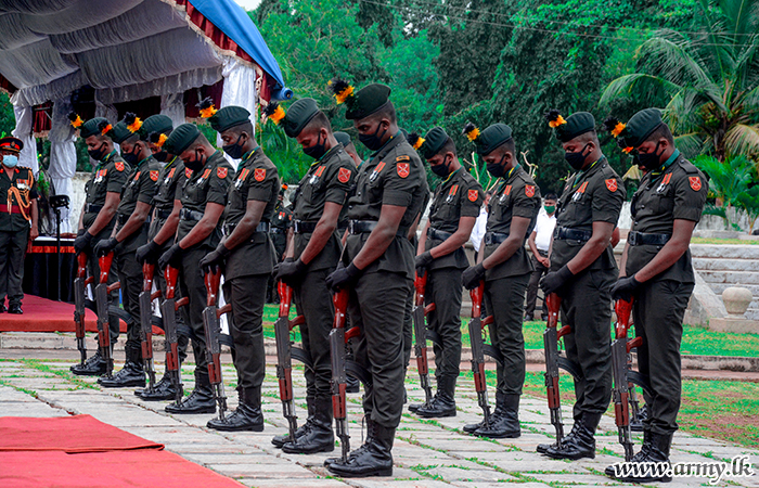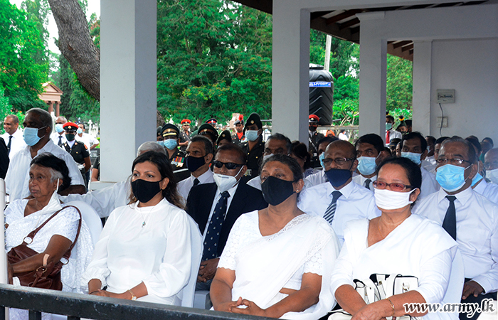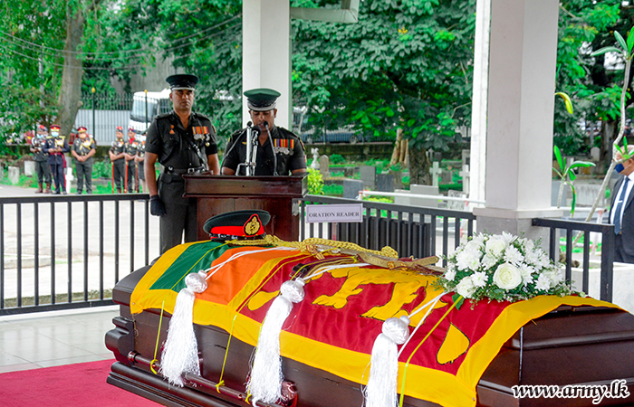 Those participating in the solemn funeral ceremony in the cemetery afterwards listened to the Special Part I Order, issued by Major General Sena Waduge, Adjutant General of the Sri Lanka Army on behalf of the Commander of the Army.
