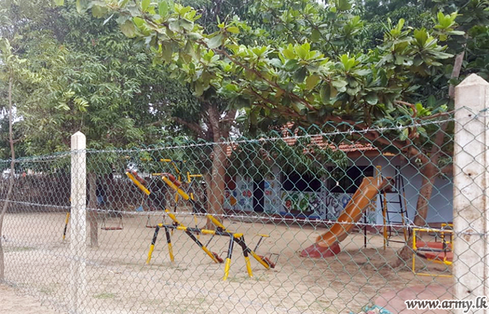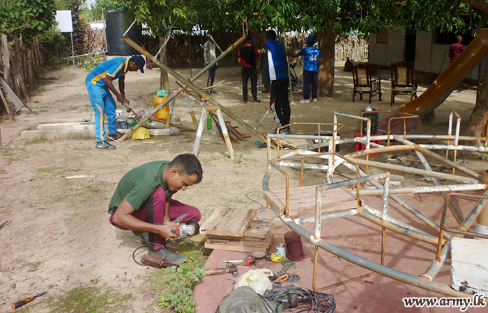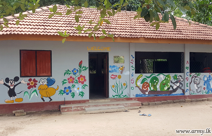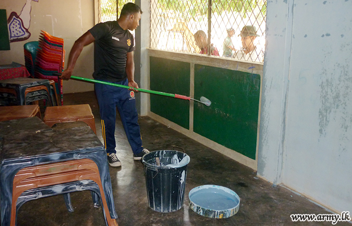 On directions given by the Major General Hemantha Bandara, General Officer Commanding, 65 Division and under the supervision of the Commander 652 Brigade, Brigadier Anil Perera, troops of the 20 (V) VIR attended to repairs at St. Phillip's preschool at Anavilandankulam on 05 September with the support of the villagers.