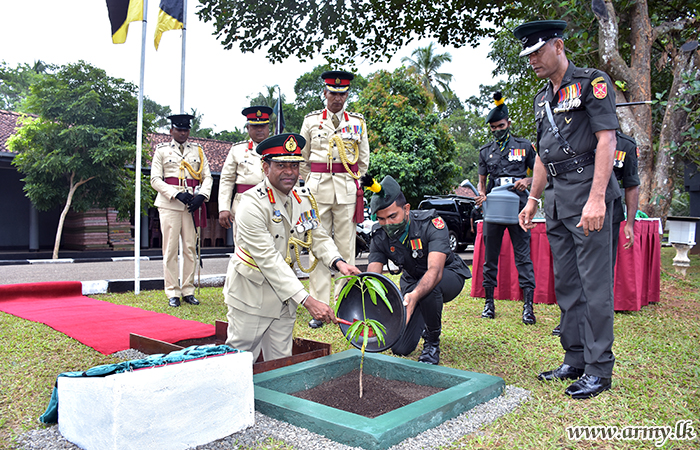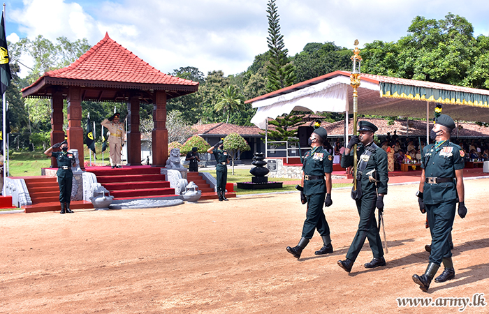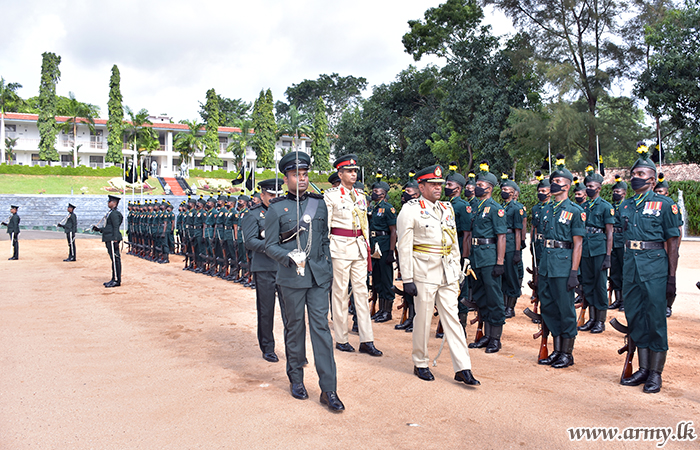 On arrival at the Regimental Centre Major General Hemantha Bandara was warmly welcomed near the Truncheon house by Colonel Dulith Perera, Deputy Centre Commandant and invited to review the Guard Turnout.