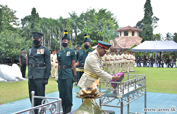 After a while, the new Colonel of the Regiment paid floral tributes to at War Heroes' Monument in memory of all those gallant Officers and Other Ranks of the SLSR who made the supreme sacrifice for the motherland.