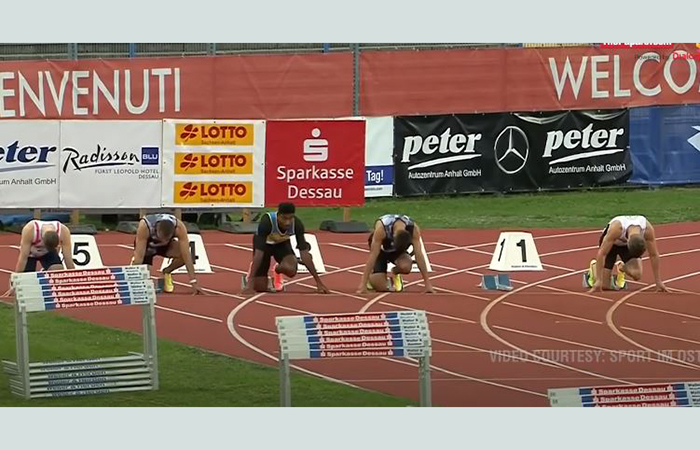 Lance Corporal Y. Priyadarshana Abeykoon of Sri Lanka Electrical and Mechanical Engineers (SLEME) Regiment in the International Athletic Meet in Dessau, Germany on Tuesday (8) made a new South Asian record clocking 10.16 seconds in the 100 m run event in the Meet.