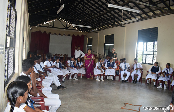 One more workshop on 'counselling' to help students sitting the forthcoming G.C. E (O/L) examination in the general area of Pooneryn was arranged by the 66 Division HQ in close cooperation with the 661 Brigade and 5 (V) Mechanized Infantry Regiment troops on Tuesday (08) at Pooneryn Central College.
