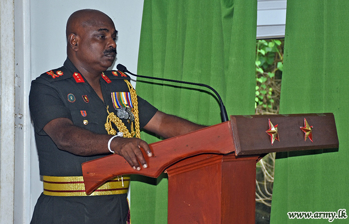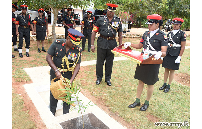 Major General Lakshman Fernando also planted a sapling in the venue, followed by an address to the troops before he joined an all rank tea.