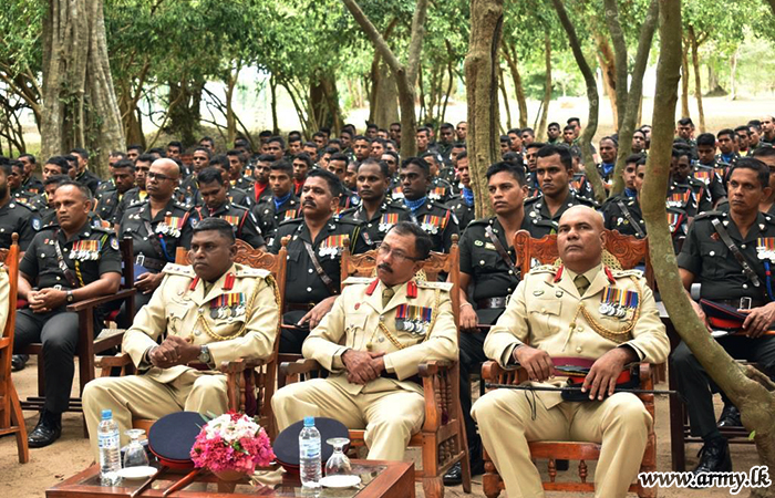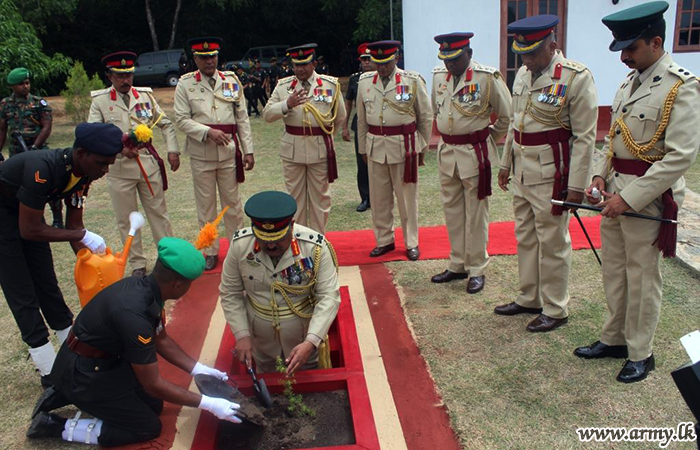 Afterwards, Major General Randula Hathnagoda addressed his troops, planted a sapling in the compound and joined an all rank tea.