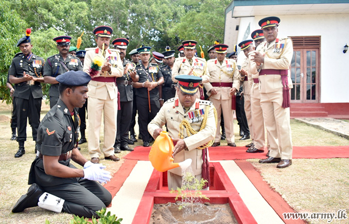 The newly-appointed General Officer Commanding of the 64 Division was welcomed by Staff Officers and honoured in a Guard Turnout and subsequently in a Guard of Honour, presented by 14 Sri Lanka Sinha Regiment troops of the Division. Afterwards, he was invited to plant a sapling as a gesture of memory. Later on, Brigadier Ajith Pallawala placed his signature in the first official document to symbolize the assumption of duties, amidst chanting of 'Seth Pirith' in the presence of senior officers. Later he addressed all rankers of the Division and set out his vision for the Division.