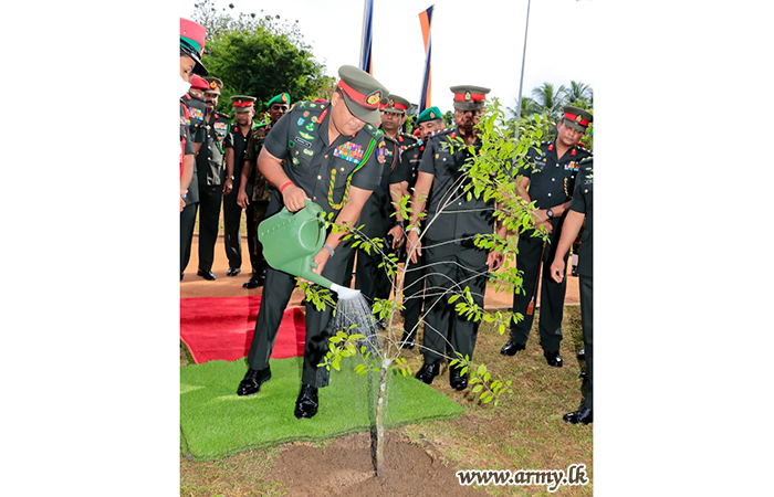 The event which also coincides with the 'Thuru Mithuru-Nawa Ratak' concept of the Army Chief was graced by Lieutenant General Shavendra Silva, Chief of Defence Staff, Commander of the Army and Head of the National Operation Centre for Prevention of COVID-19 Outbreak as the Chief Guest at the invitation of the Directorate of Agriculture and Livestock. It also relates to HE the President's 'Saubhagyaye Dekma' policy statement which advocates urban greeneries and planting of rare species.