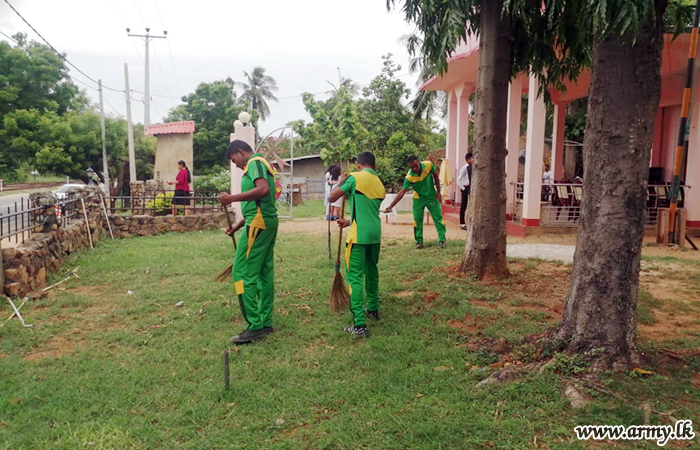 Troops of 2 Volunteer Battalion of the Gajaba Regiment cleaned the entire church premises including surroundings and cleared possible mosquito breeding places. |