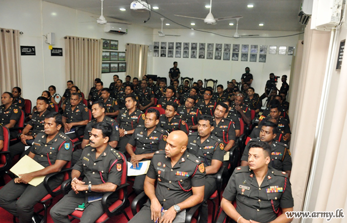 Directors and representative Officers of the Army Headquarters, Brigadier Priyantha Weerasingha, Director Ordnance Services (DOS), Brigadier Sanath Aluwihare, Director Welfare, Brigadier Chanaka Meththananda, Director of Ordnance, Director of Budget and Finance and Colonel N Nallaperuma, Colonel Legal of Directorate of Legal affairs during the workshop refreshed knowledge respectively on ordnance procedures, welfare procedures, ordnance, loan procedures and calculations of interest and importance of the Army Act and prerequisites for the Court of Inquiry.
