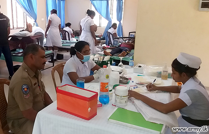 About 70 troops of the 17 (V) Vijayabahu Infantry Regiment under command to the 561 Brigade of the 56 Division voluntarily came forward and donated their blood at the Nedunkerni Road Development Authority Circuit Bungalow, together with seven Police Officers for the benefit of patients in need of blood in Vavuniya Hospital and other hospitals in the Wanni region.