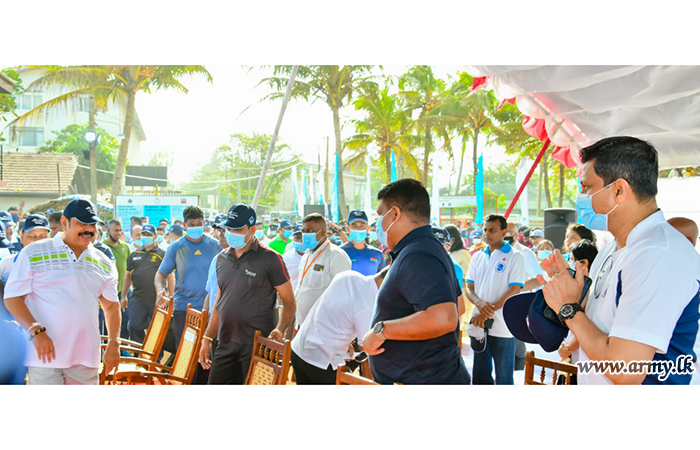 Hon Prime Minister Mahinda Rajapaksa, Hon Minister of Environment, Parliamentarians, Chief of Defence Staff and Commander of the Army, Lieutenant General Shavendra Silva, Navy and Air Force Commanders, Senior Police Officers as distinguished invitees took part in the inaugural cleanup programme with others. A large gathering of tri service troops also contributed to the drive with enthusiasm, together with all volunteers.