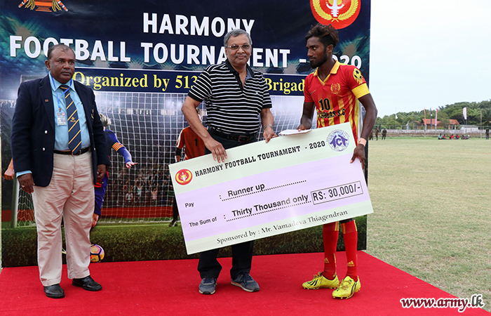 The mega tournament was competed by 12 football clubs in the peninsula and was organized by the 51 Division and 513 Brigade. The finals were played on Saturday (19) at Ariyalai Federation Ground in front of a large gathering of football fans in the Jaffna peninsula.