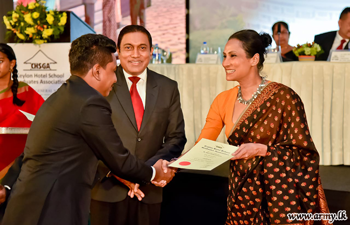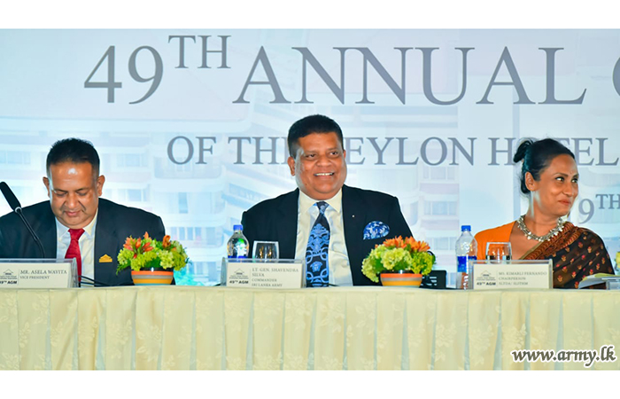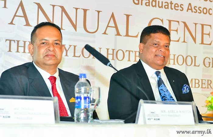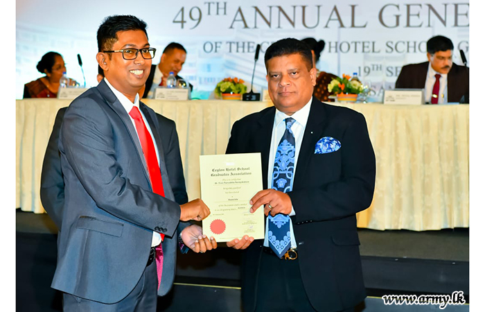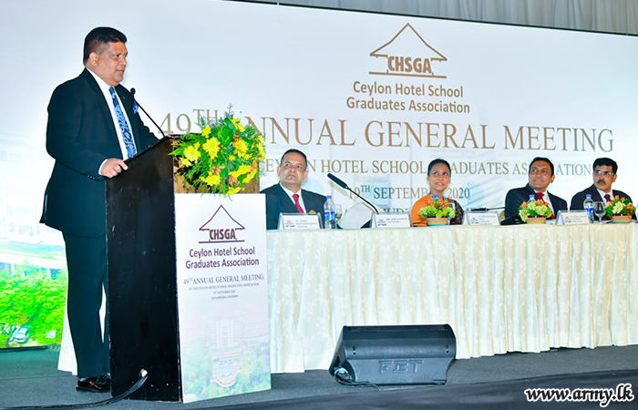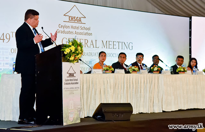 The Ceylon Hotel School Graduates Association (CHSGA) honoured Lieutenant General Shavendra Silva, Chief of Defence Staff, Commander of the Army and the Head of the National Operation Centre for Prevention COVID-19 Outbreak (NOCPCO) by inviting him to deliver the keynote address at its 49th Annual General Meeting, held Saturday (19) evening at Hotel Taj Samudra.