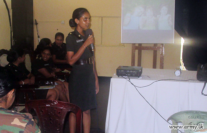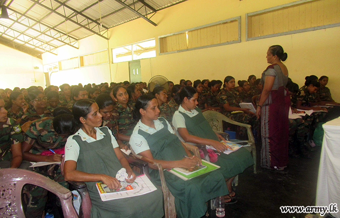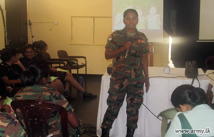 Brigadier Manjula Karunarathna Director Psychological Operations and Lieutenant Colonel B.G.S Samanthi of the same Directorate delivered lectures to woman soldiers in the 5 (volunteer) Sri Lanka Army Womens Corps (SLAWC) and woman soldiers in the SLAWC Training School in Sandunpura during 16-17 September.