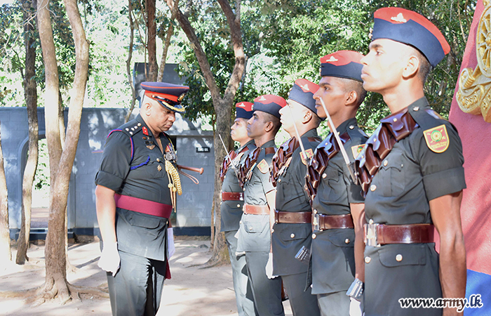 Commander Artillery Brigade was accorded a Guard Turnout with military formalities at the entrance and warmly welcomed by Lieutenant Colonel W. S. A. B Dharmarathne, Commanding Officer, 8 SLA.