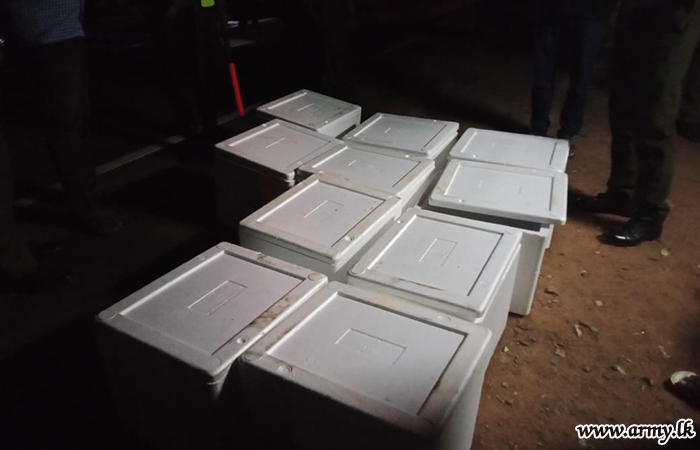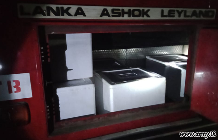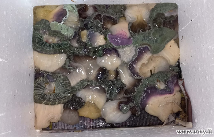 15(Volunteer) Gemunu Watch (GW) troops of the 542 Infantry Brigade under the 54 Division of the Security Force Headquarters - Wanni, manning the Kunchikulam roadblock in Mannar around 10.30 pm on Thursday (24) apprehended a suspect with 50 kgs of Jelly Fish while being taken to Colombo on board an SLTB bus.