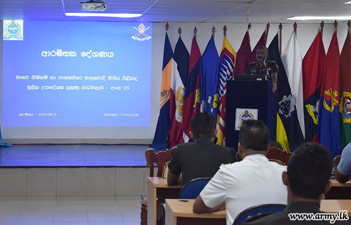 The three-week long 28th training course on 'Human Rights and International Humanitarian Law (HR & IHL) for Army, Navy, Air Force and Special Task Force personnel at the Institute of Peace Support Operations Training Sri Lanka (IPSOTSL) in Kukulegaga on Monday (21).