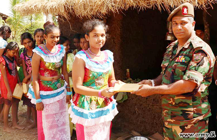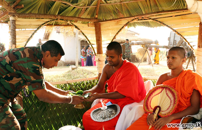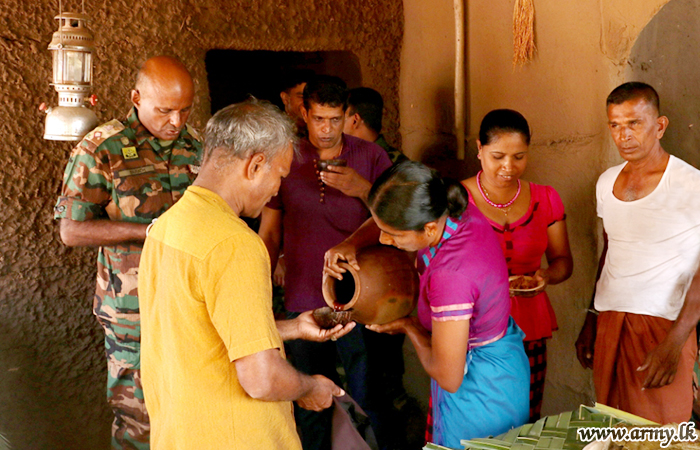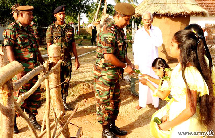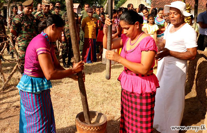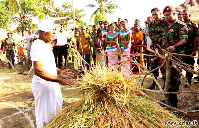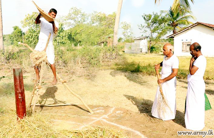 A gathering of school students, representatives of the 222 Brigade, nearby battalion troops, officials of the Kantale Divisional Secretariat, Mahaweli Development Authority, Department of Agrarian Services, local farming communities and societies, officers and other ranks actively joined the typical harvesting ceremony, following arrangements, made by Major A. C. Prasanna, Officer Commanding of the 1 SLAGSC Detachment at Alla - Kanthale.