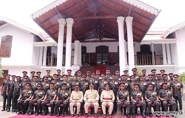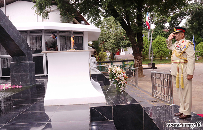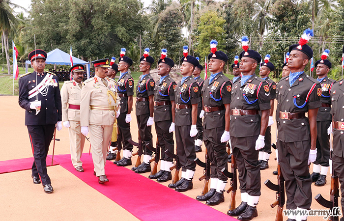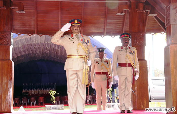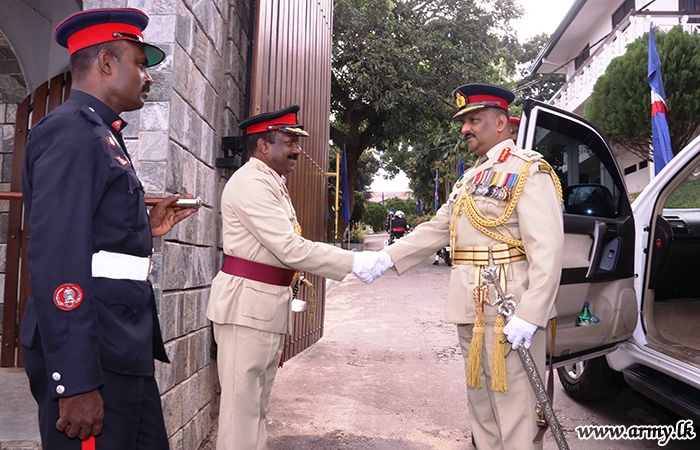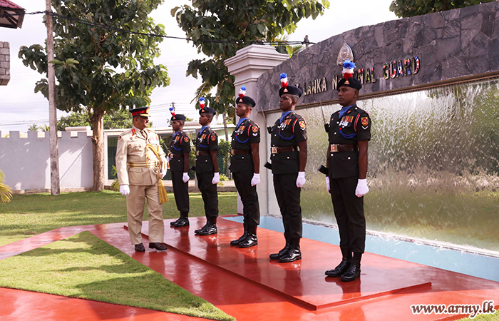 The newly-appointed Colonel of the Regiment on arrival at the premises was greeted to a Guard Turnout at the entrance to be later on welcomed by the SLNG Centre Commandant. After laying floral wreaths to the memory of fallen SLNG War Heroes at the monument, he was invited to receive the salute in the Guard of Honour at the Regimental Centre parade ground.