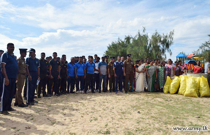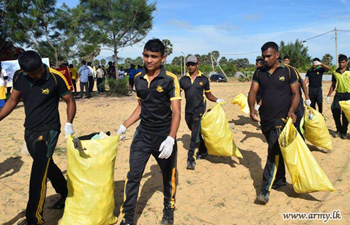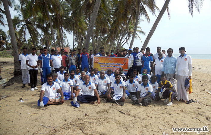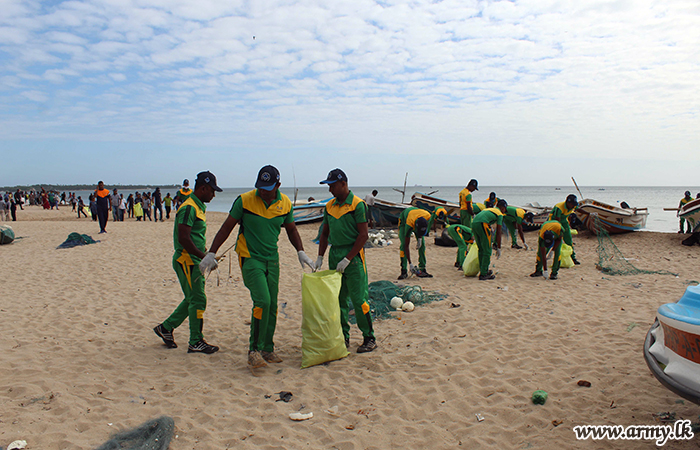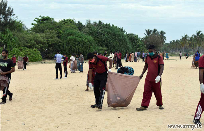 In addition to that, troops of the 23 Sri Lanka Sinha Regiment and 8 Battalion of Sri Lanka National Guard, together with Sri Lanka Navy conducted a beach cleaning operation in Thirukkovil coastal belt.