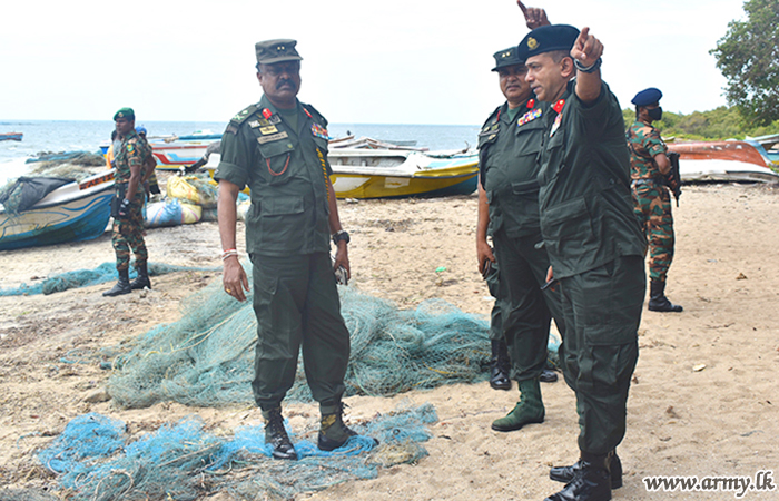 Later, he visited Moondampiddi fishing harbour in the 541 Brigade area and interacted with leaders in the local fishing community. He also inspected the security measures along the south coast of Mannar Island in 543 Brigade area of responsibility and commended the high level of alertness, demonstrated by 7 Vijayabahu Infantry Regiment troops that led to the detection of a haul of Kerala Cannabis.