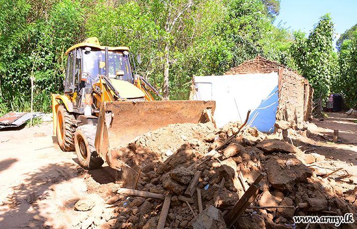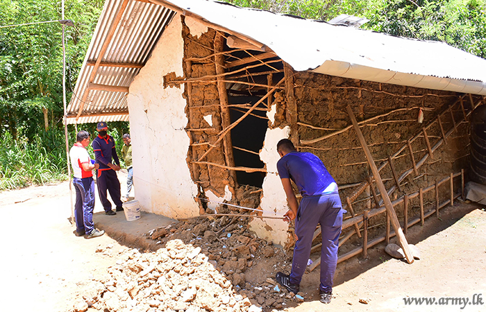 Following instructions given to Lieutenant General Shavendra Silva, Chief of Defence Staff and Commander of the Army by HE the President Gotabaya Rajapaksa, the Army was invited to build a new house for a needy family whose house was extensively damaged due to an elephant attack.