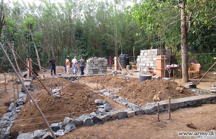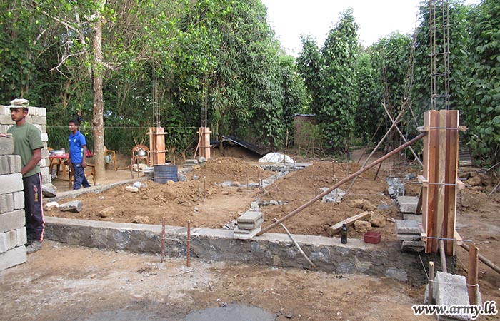 Troops of the Security Forces-Central offered their skilled manpower and technical expertise to start construction of one more new house for a needy family in the general area of Haldummulla in Badulla on Friday (25) under the ‘Janapathi Gama Samaga Pilisandara' project.