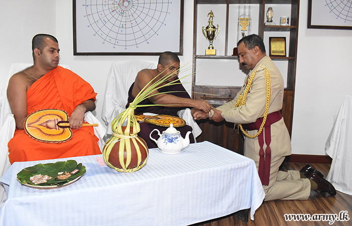 A brief religious ceremony, administered by members of the Maha Sangha invoked blessings on the new appointment before he left his signature in a formal document to signify the acceptance of his new office. Adding memories to the occasion afterwards, the new GOC planted a Mango sapling in the premises.