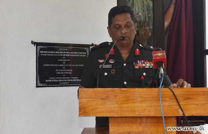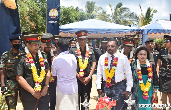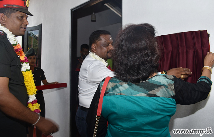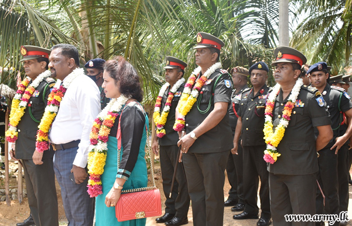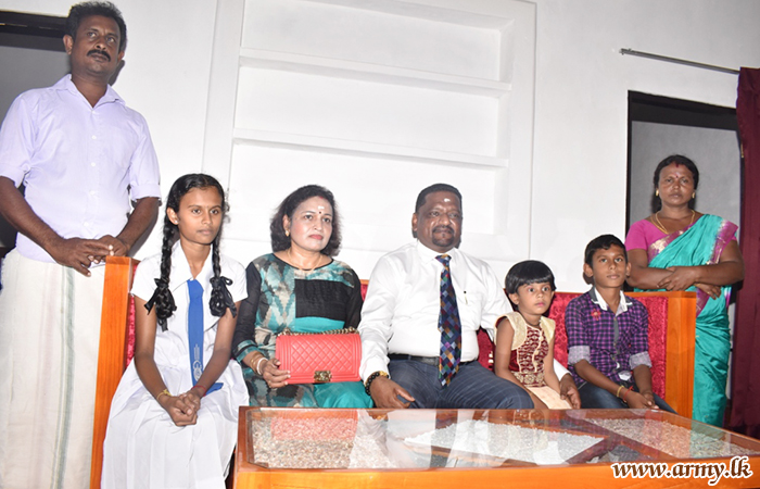 Major General Jagath Rathnayake, Commander Security Forces - Mullaittivu (SF-MLT) at the request of Major General Priyantha Perera, General Officer Commanding (GOC) 59 Division attended the housewarming ceremony as the Chief Guest together with Brigadier Wasantha Palamkubura, 593 Brigade Commander and delivered the keys to the new house during a simple ceremony.