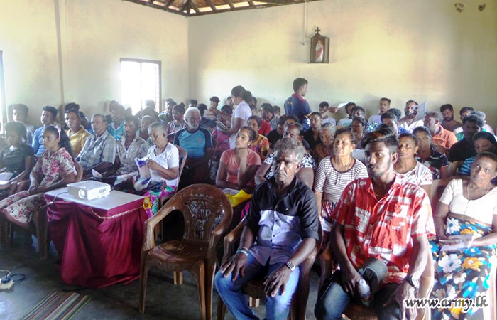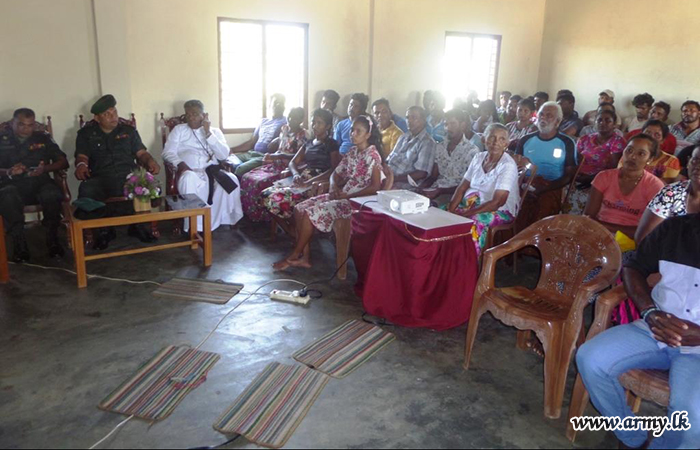 The awareness programme was organized by 5 (V) SLSR on the instructions of the General Officer Commanding (GOC) 59 Division under the close supervision of the Commander 593 Brigade, Brigadier Wasantha Palamakumbura in liaison with the Medical Officer of Health (MOH) at Welioya.