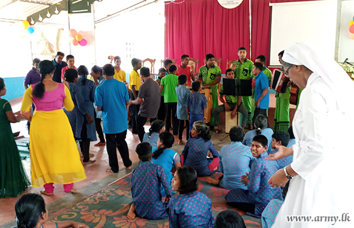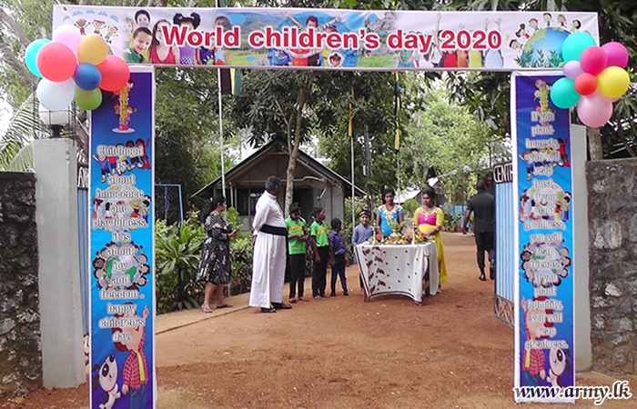Troops considering the plight of children and adults in the area pocketed out own money and bought 50 gift packets for distribution in connection with the World Children’s/Elders’ Day after inviting them to the renovated Children’s Park.