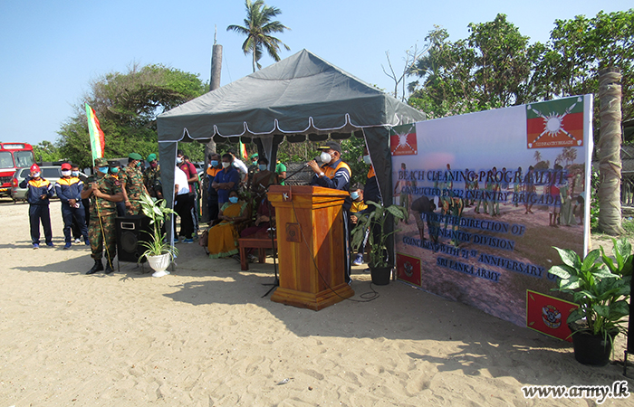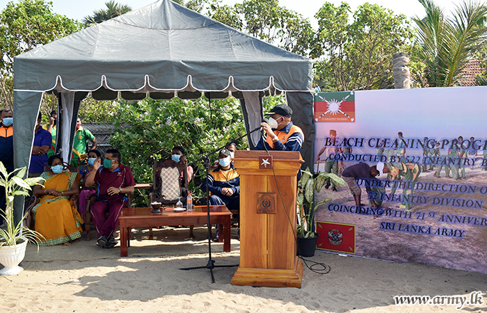 The project saw highly-polluted major coastal areas, littered with discarded papers, wrappers, polythene, plastic bottles, empty beer cans and liquor bottles, etc collected and beach areas cleaned up. Troops of the 52 Division, 522 Brigade and 7 (V) and 15 (V) Battalions of Gajaba Regiment in close coordination with Policemen and civil volunteer organizations carried out the full-day programme.