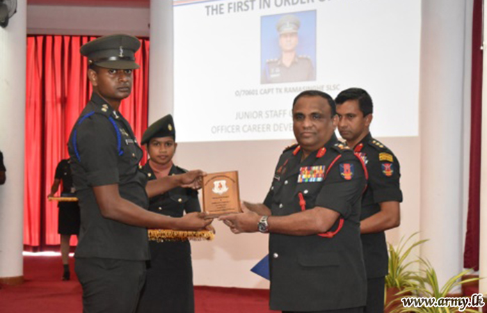 Major W.P.D.N Abeyrathne of SLSC, Major T.S.N.K Peiris of SLSC and Captain T.K Ramasinghe of SLSC who followed above courses respectively achieved the first place in order of merits and carried away graduation certificates and awards during the graduation ceremony, held on Friday (9) at the OCDC.