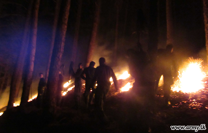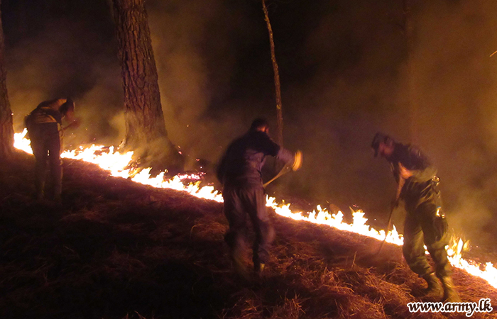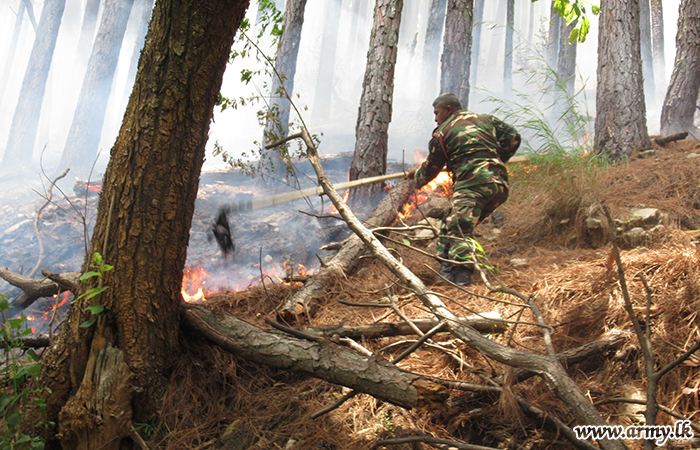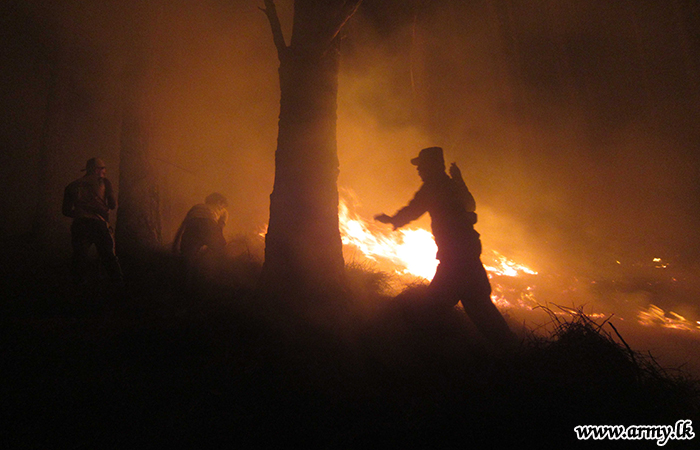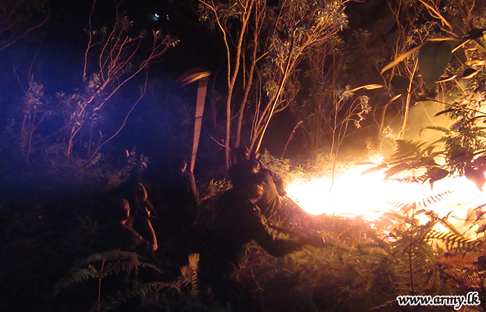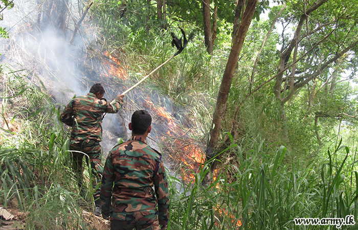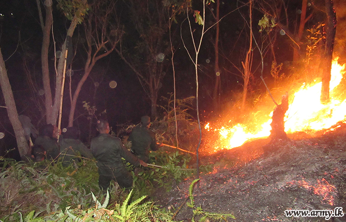 Troops of the Security Force Headquarters - Central (SFHQ-C) and troops of the Sri Lanka Army Volunteer Force Training School (VFTS) on Monday (12) rushed and assisted to extinguish a sudden bush fire that erupted in the general area of Wanghedigala in Haldummulla.