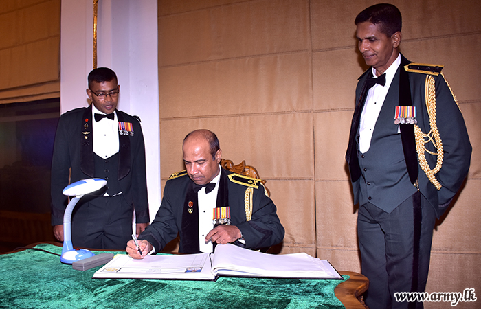 The programme of events culminated with the customary dining out hosted on outgoing Major General Lalith Rathnayake's behalf. His spouse, Mrs Thushari Manjula Rathnayake, Senior Officers, Officers and their spouses joined the occasion in the Regimental Officers’ Mess. The event observed all health guidelines.