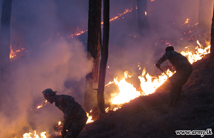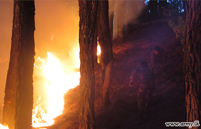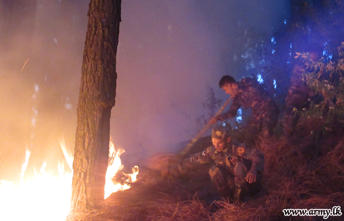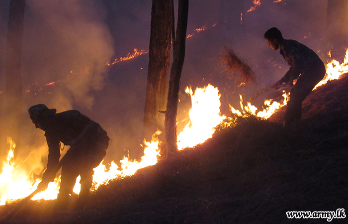 Troops of the Security Forces - Central rushed and assisted to extinguish a sudden bush fire that erupted in the general area of Digana Thenna in the Bandarawela Divisional Secretariat on Wednesday (22).