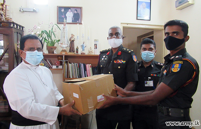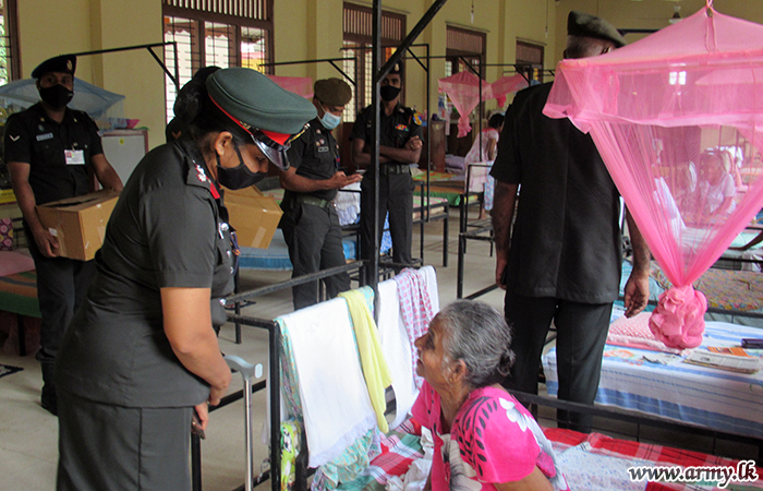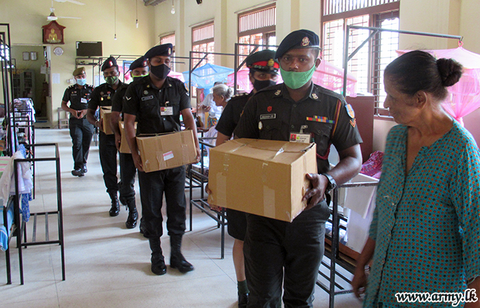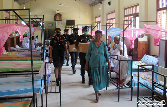 Army-organized packs of dry rations were donated among the inmates at Bogahapitiya Shantha Elders’ Home, Kithusevana Marians' Elders' Home in Mount Lavinia, Suwa Sevana Elders’ Home in Gampaha, Saint Thomas' Church in Kotte and Elders' Home in Mahabage on Thursday (22) as a project that corresponded to the recent commemoration of the Army Anniversary.