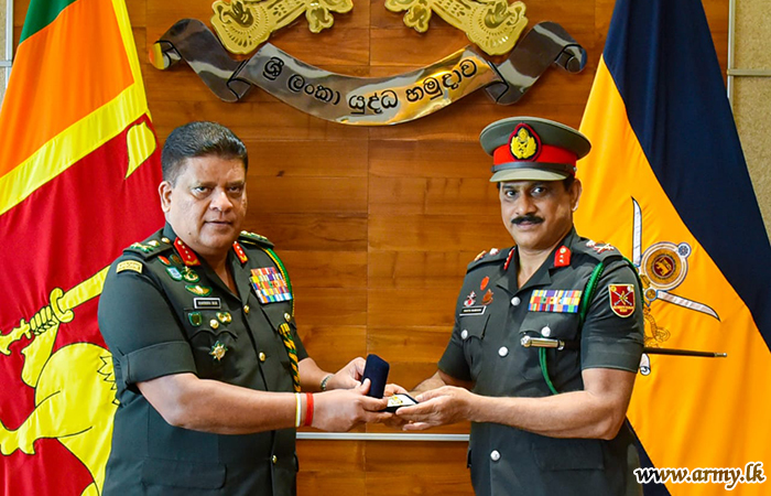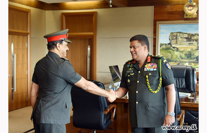 Retiring Major General Shantha Rajakaruna, Commandant, (Chief Executive Officer) at Ranaviru Apparels at Yakkala received appreciative commendation from the Chief of Defence Staff and Commander of the Army, Lieutenant General Shavendra Silva when the former called at the Commander’s office at the Army HQ on Friday (23).