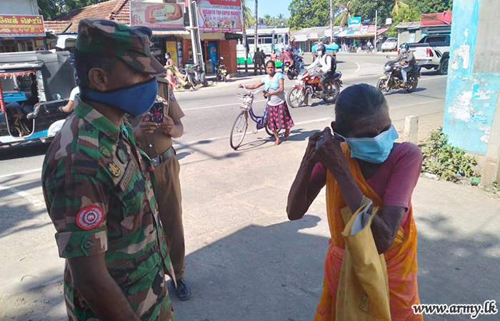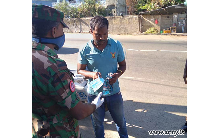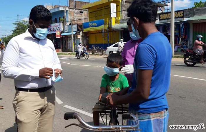 A large stock of face masks were distributed among civilians and community leaders in the general area of Welikanda on Thursday (22) following an initiative taken by the 231 Brigade in an effort to underline the importance of its use as a precautionary measure.