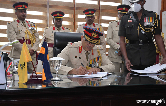 The Senior Officer was received by Brigadier Administration, SLAVF Brigadier Christi Jayasinghe and the Commanding Officer, Lieutenant Colonel S.A.Y Perera on arrival in the camp premises.