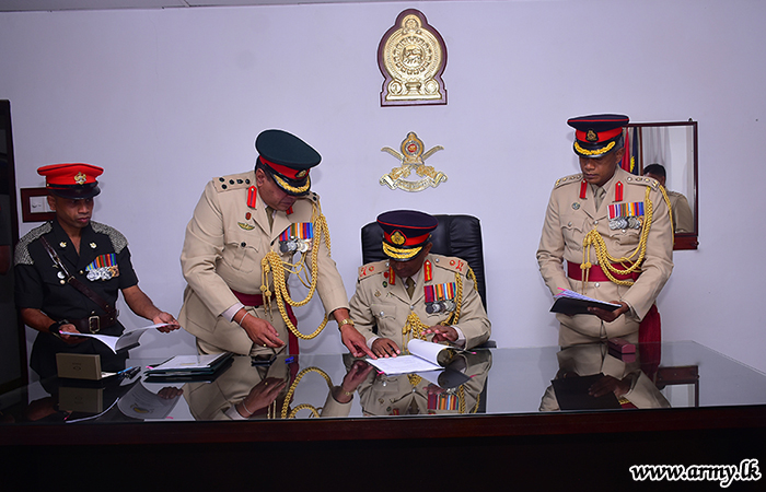 He was warmly welcomed by Staff Officers on arrival at Diyatalawa and honoured in a Guard Turnout, presented by the troops of the 18 Gemunu Watch. After a few minutes, Major General Kumara Jayapathirana while members of the Maha Sangha commenced chanting of ‘Seth Pirith’ placed his signature in an official document to signify the acceptance of his new office as several Senior Officers looked on. Later on, he was invited to mark the occasion by planting a sapling in the compound as a gesture of memory.