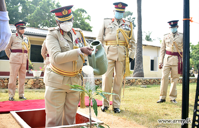 The visiting Commander, Security Forces-Wanni was honoured in a Guard Turnout at the 54 Division HQ and was invited to plant saplings in respective camp locations during the visit. Major General Indrajith Bandara, General Officer Commanding of 54 Division briefed the visiting Commander on the operational deployment of troops in the region, served by the 54 Division.