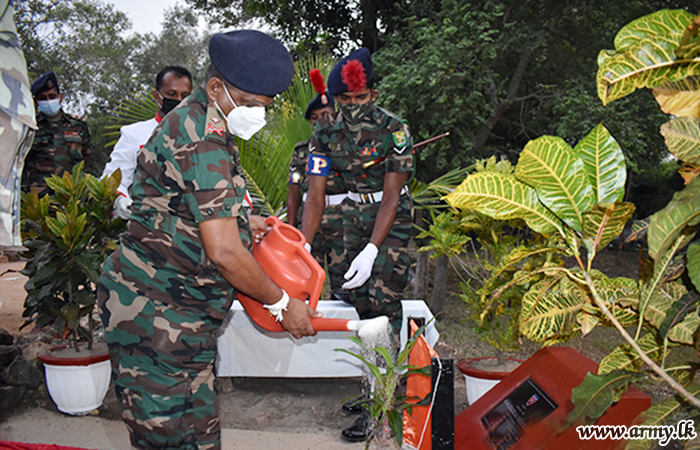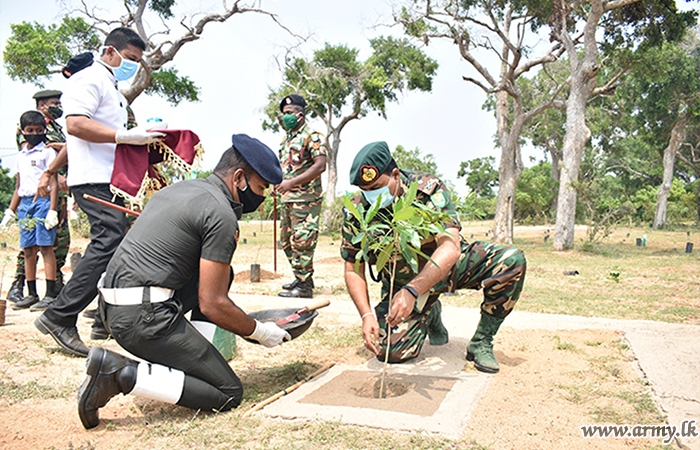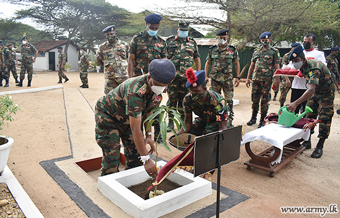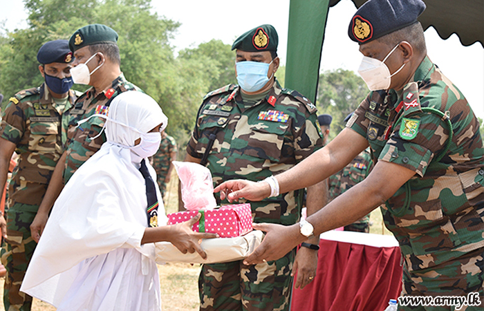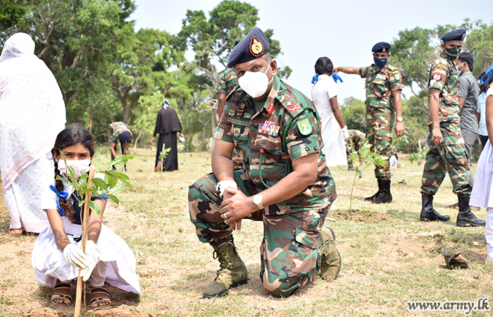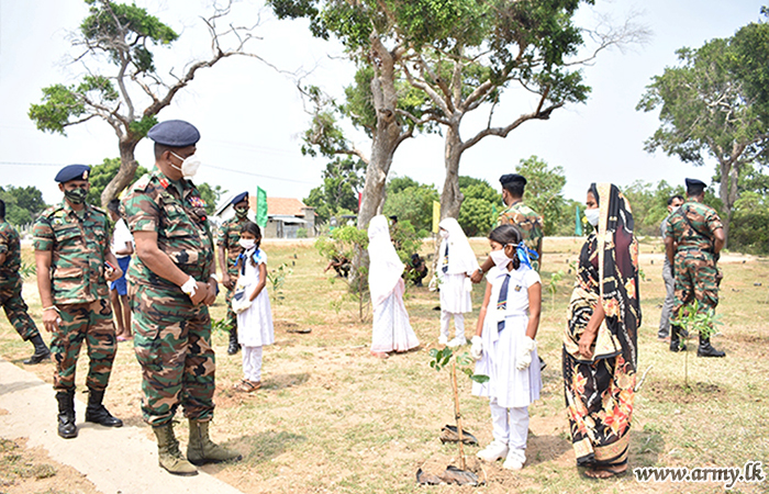 During his visit to the 542 Brigade in Kallaru, a tree planting programme to coincide with the ‘Thuru Mithuru-Nava Ratak’ got underway. In addition, a stock of school accessories were also distributed among poor children in Kallaru area with the participation of the visiting Wanni Commander.