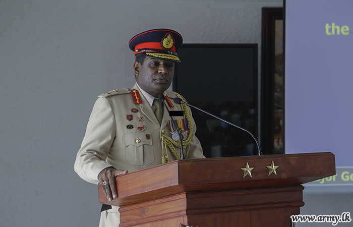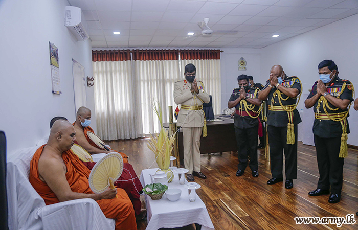 In a symbolic gesture at his new office, Major General Sampath Kotuwegoda placed his signature in a formal document in the presence of Council members, Commanding Officers, other officers and staff of the RHQ after observance of brief religious practices and lighting of the traditional oil lamp. He also addressed Officers at the Officers' Mess and spoke out his plans as the new Colonel Commandant.